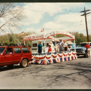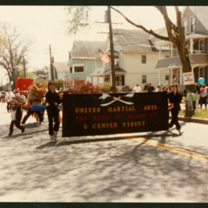 The Chicopee Centennial Celebration - Blue Ribbon Committee Parade Banner - crowds line the parade route