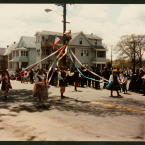 The Chicopee Centennial Celebration - 5 women and 4 children in traditional polish dance attire carry an image of the Holy Mother