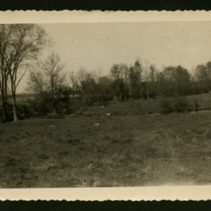 A wideshot of grassland and trees tilting downhill; (Undated)