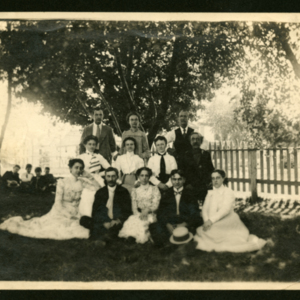 A group of 5 adults and 2 children posing for a photograph in Aprox 1930; (Undated)
