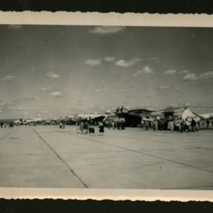 An image of a military base filled with many planes, rescue helicopters, and people that walk among the still aircraft; (Undated)