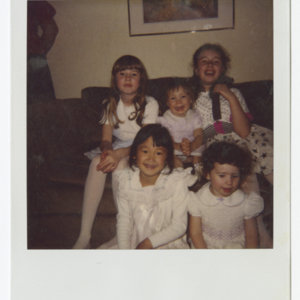 (on the couch) Becca, Laura, Sarah, (on the floor) Maria, Kelly - at Easter?