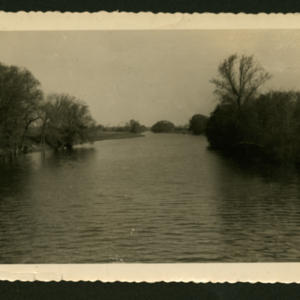 An image showing a river surrounded by trees and with land being seen connecting on both sides; (Undated)