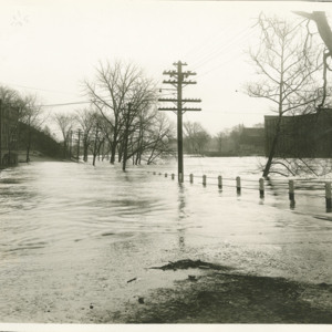 Flooding in the Ferry Lane Section, looking at the rear of the J.G. Roy Lumber Co., 861 Meadow St.( from Roy St.?)