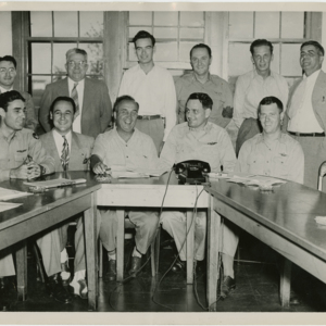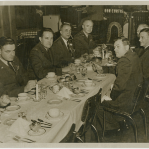 Anthony J. Stonina meets with 6 Air Reserve officers over dinner, The Don Curtis Band plays in the background - "Chic. Herald 3 col cul 65 screen 63"