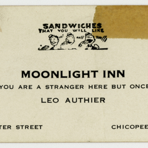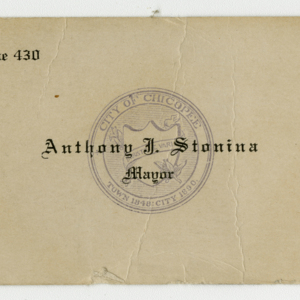 Miscellaneous materials related to the city of Chicopee and its former mayor, Anthony Stonina. Business card for Mayor Stonina.