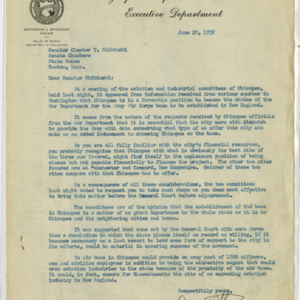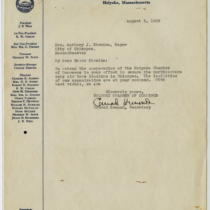 Miscellaneous materials related to the city of Chicopee and its former mayor, Anthony Stonina. Mayor's address for 1939.