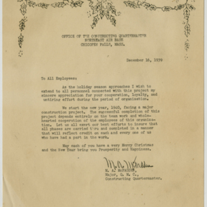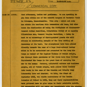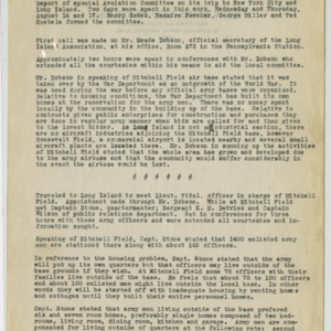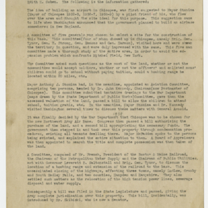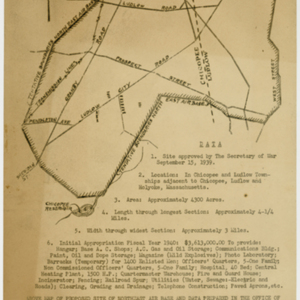 Items relating to Westover Air Reserve Base. Typed summary and timeline leading to the formation of the Northeastern Army Air Corps Base.