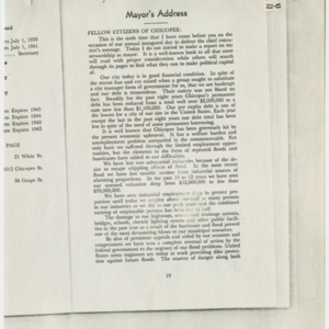 Materials Related to Miscellaneous Events and Ceremonies around Chicopee. Mayoral Address for 1936.