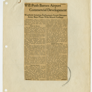 Items relating to Westover Air Reserve Base. Newspaper article about impact of Westover on Barnes Airport in Westfield, Massachusetts.