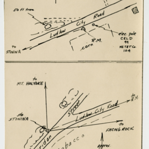 Miscellaneous materials related to the city of Chicopee and its former mayor, Anthony Stonina. Hand-drawn map showing the location of Station Stonina.