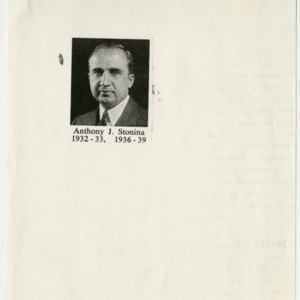 Miscellaneous materials related to the city of Chicopee and its former mayor, Anthony Stonina. Small photograph of Mayor Stonina.