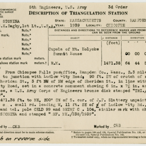 Miscellaneous materials related to the city of Chicopee and its former mayor, Anthony Stonina. Description of Triangulation Station.
