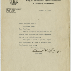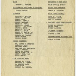 Miscellaneous materials related to the city of Chicopee and its former mayor, Anthony Stonina. Roster of the city government for 1939.