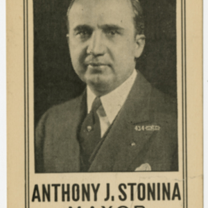 Campaign flyer/card in Anthony J. Stonina's campaign for re-election as mayor of Chicopee in December 1933