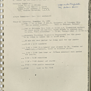 Program for an event held at the Polish National Home. Program contains a page dedicated to Mayor Stonina.