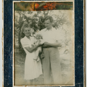 A framed black and white photograph of the Czajka family. Unknown location but shows Zygmunt and his wife Wiktoria with son Paul as a baby. Zygmunt…