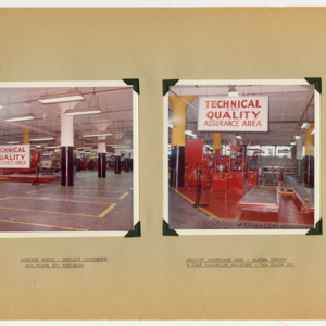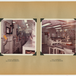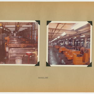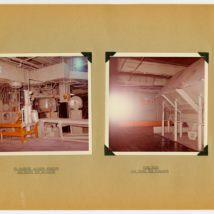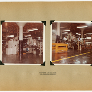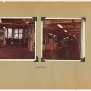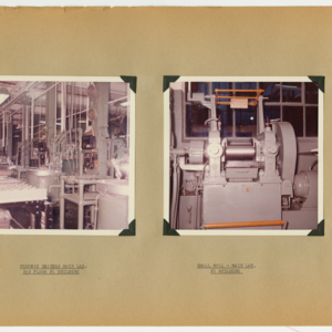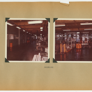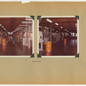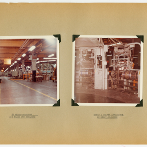 This item is a 54 page scrapbook of photographs showing the results of a six-month rehabilitation of the United States Rubber Company's UniRoyal Tire Plant in Chicopee Falls, Massachusetts. The project was started in July, 1963 and lastest through Demember, 1963. The scrapbook is divided into departments and the photographs show the machines and work spaces within the plant. There are no people in the photographs.