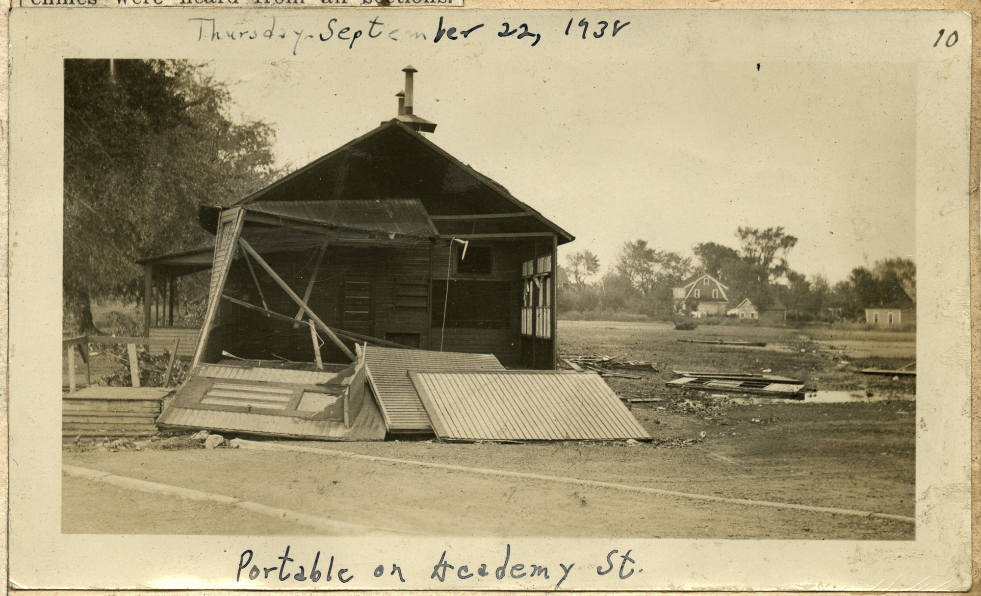 Damage visible to a portable building on Academy Street in Chicopee the day after the storm.