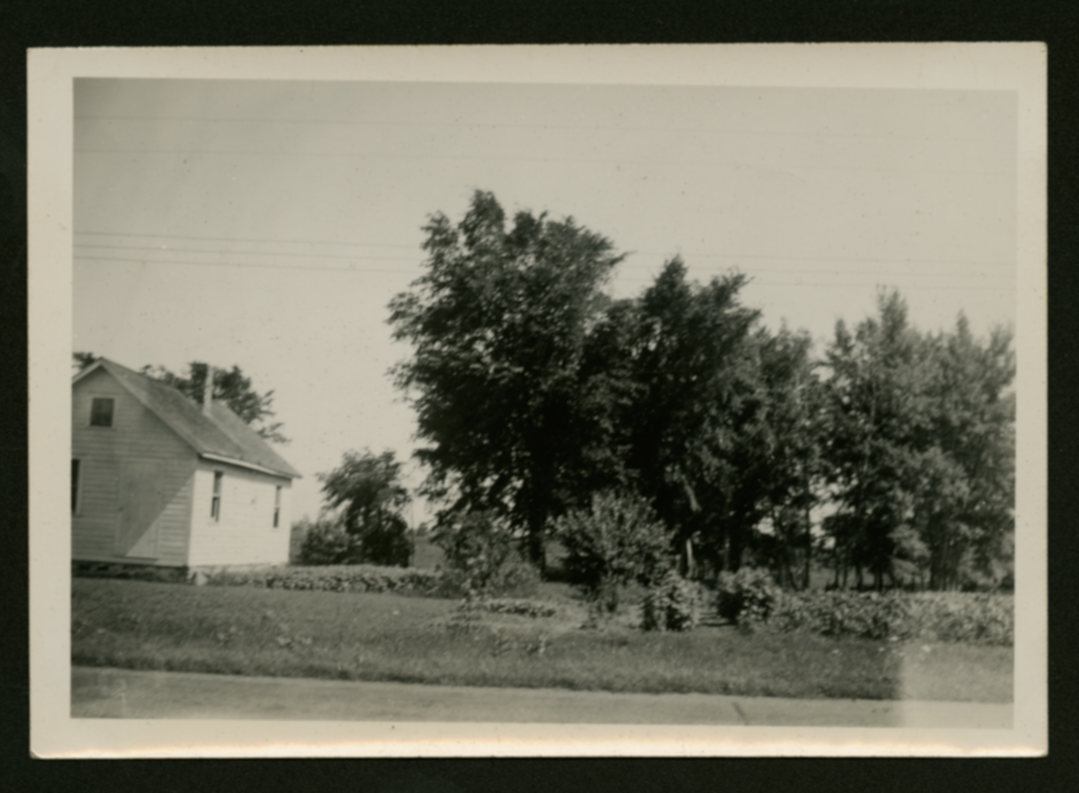An image showing trees alongside the road and next to a house. (Undated)