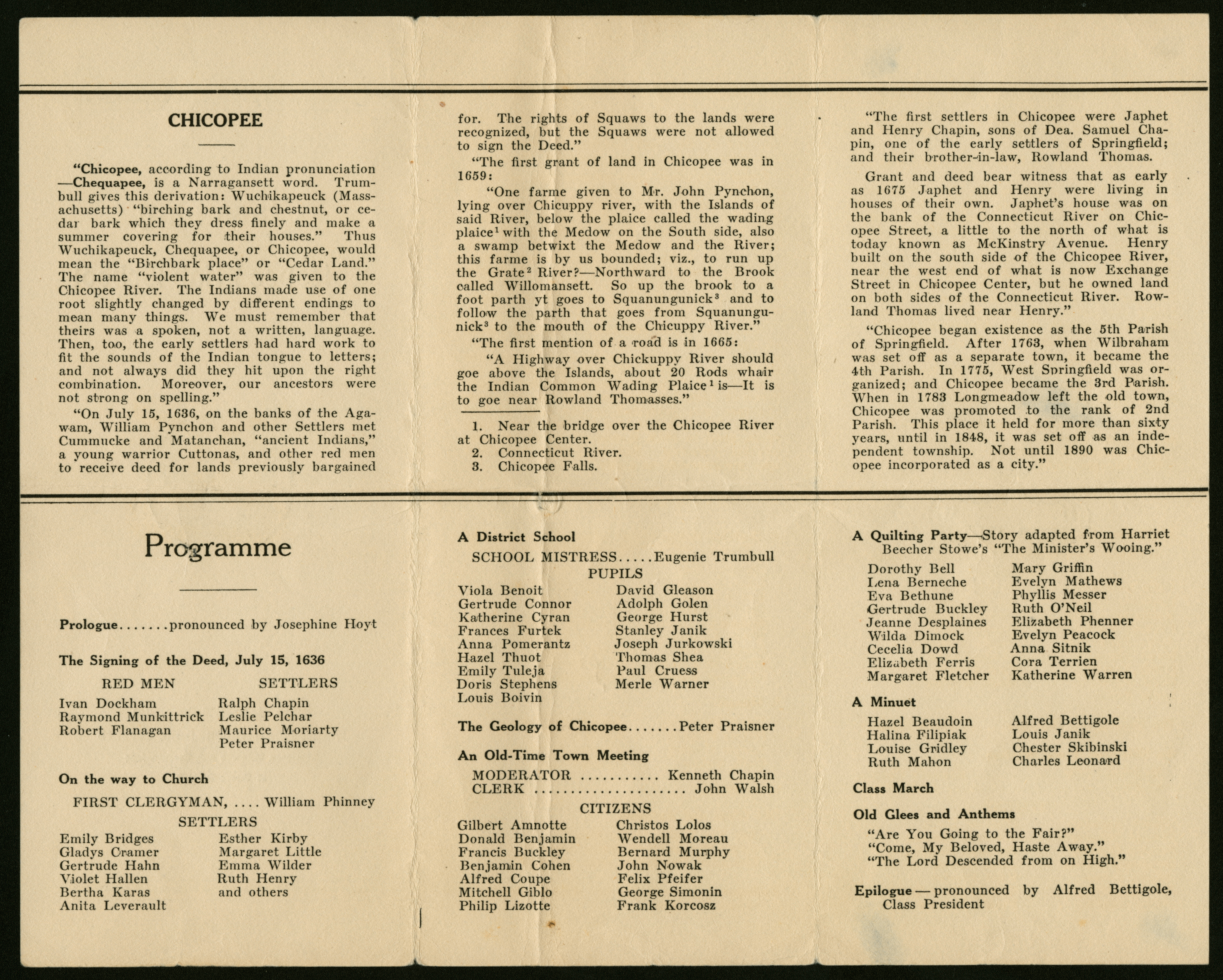 “Chicopee High School Class Day Pamphlet, 1924,” Chicopee Archives Online, accessed March 5, 2026, https://www.chicopeepubliclibrary.org/archives/items/show/10286.