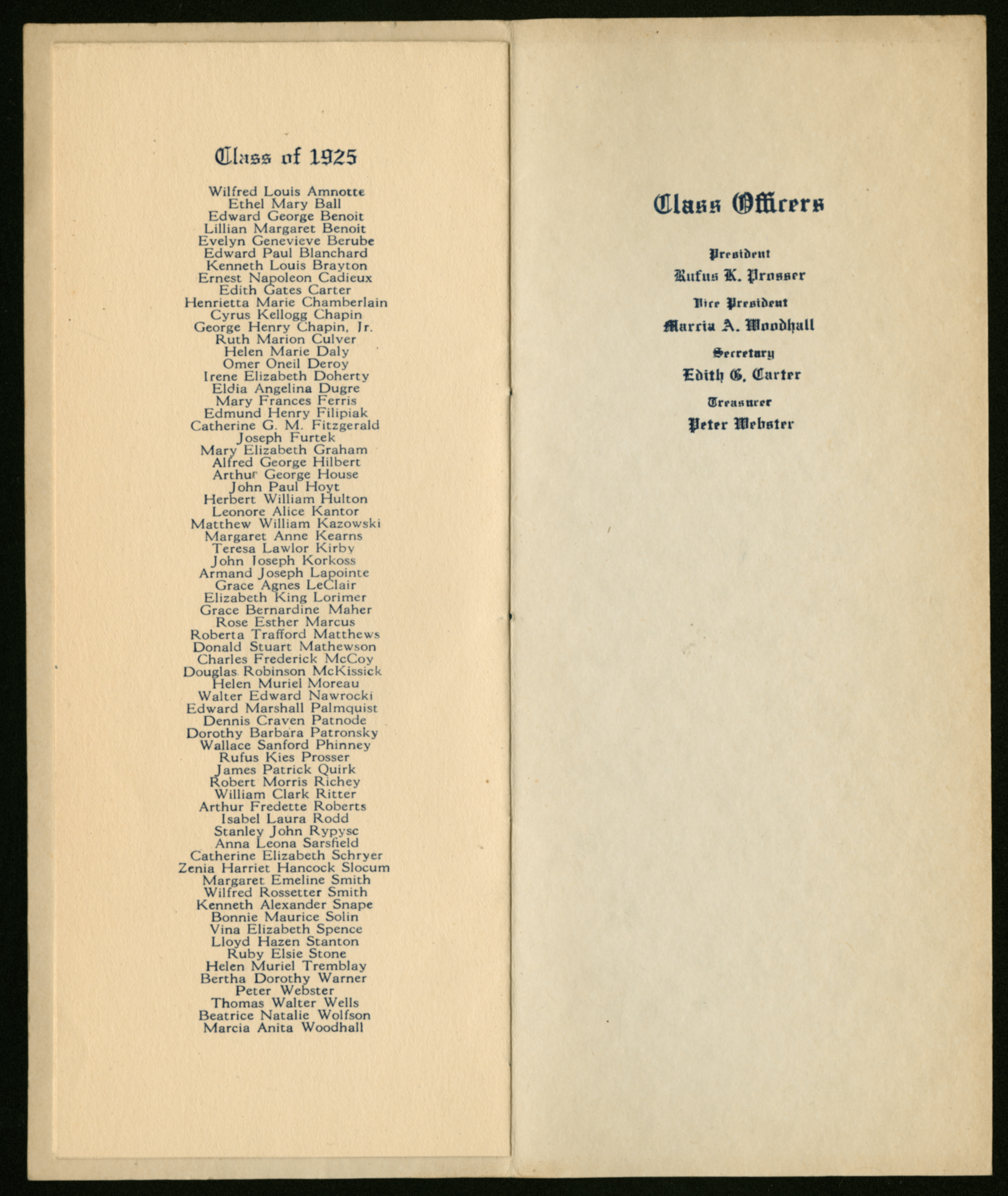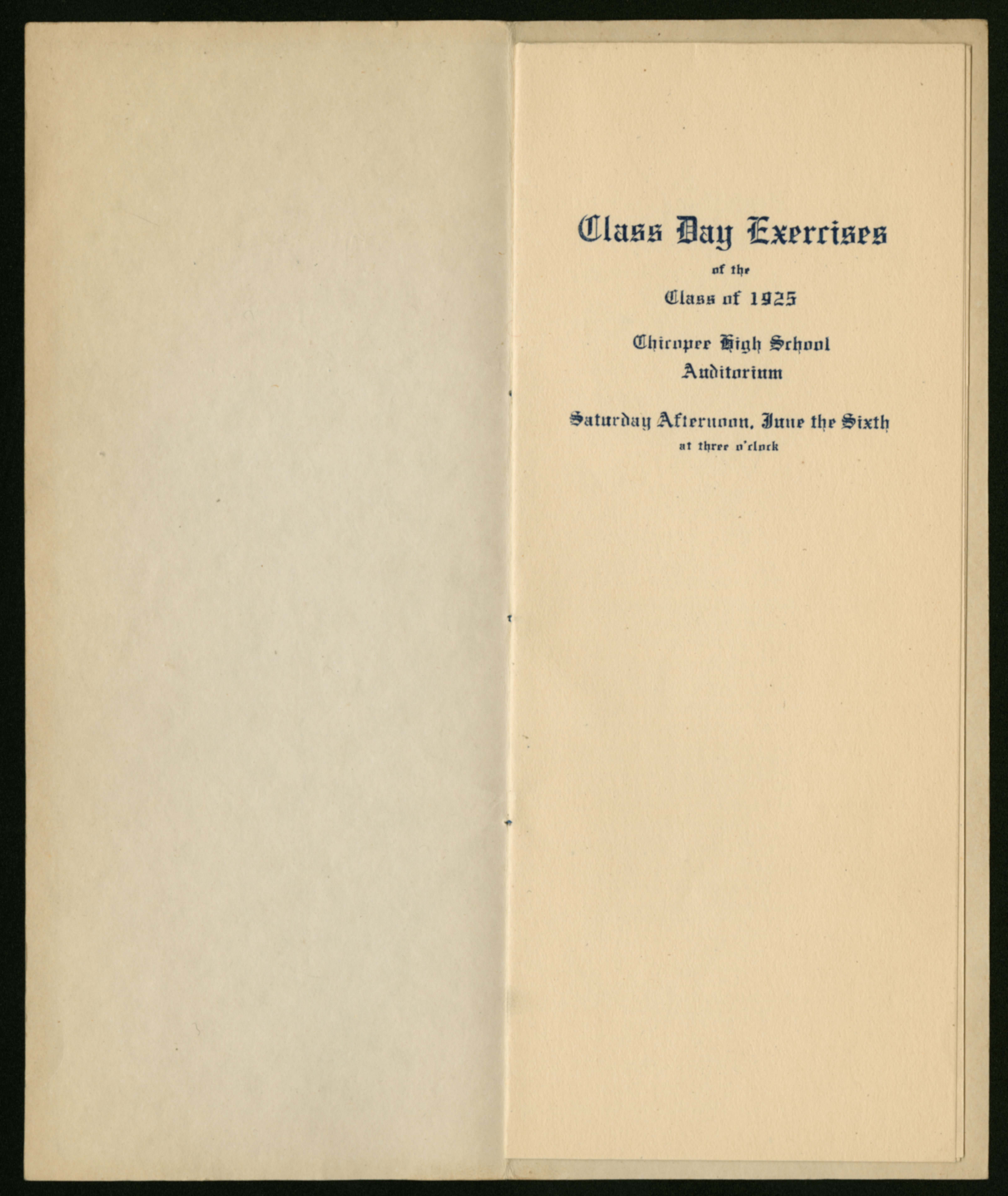 “Chicopee High School Class Day Program, 1925,” Chicopee Archives Online, accessed March 5, 2026, https://www.chicopeepubliclibrary.org/archives/items/show/10287.