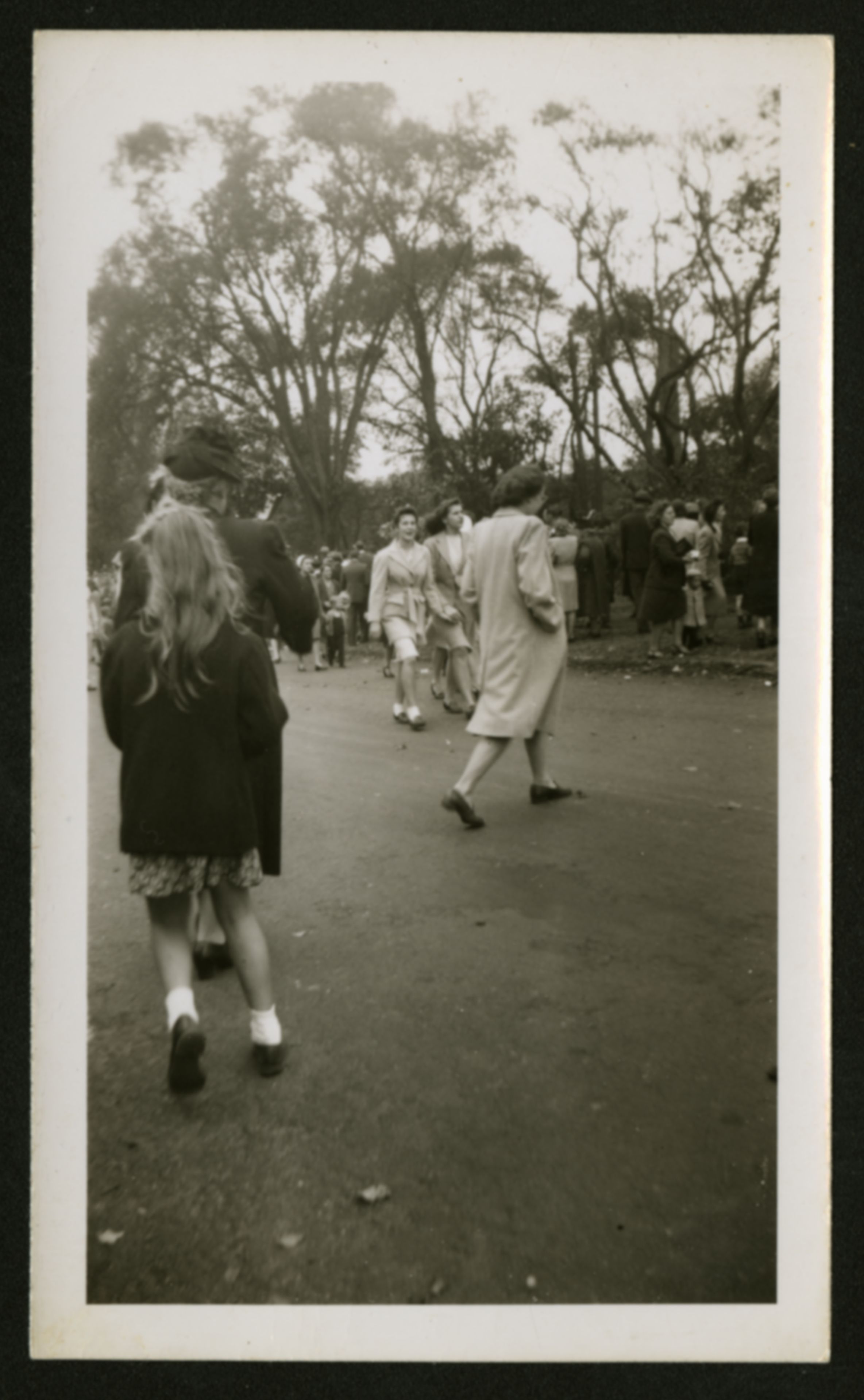 A photograph showing the Parade road being walked on and a crowd all attending the parade; (Undated)