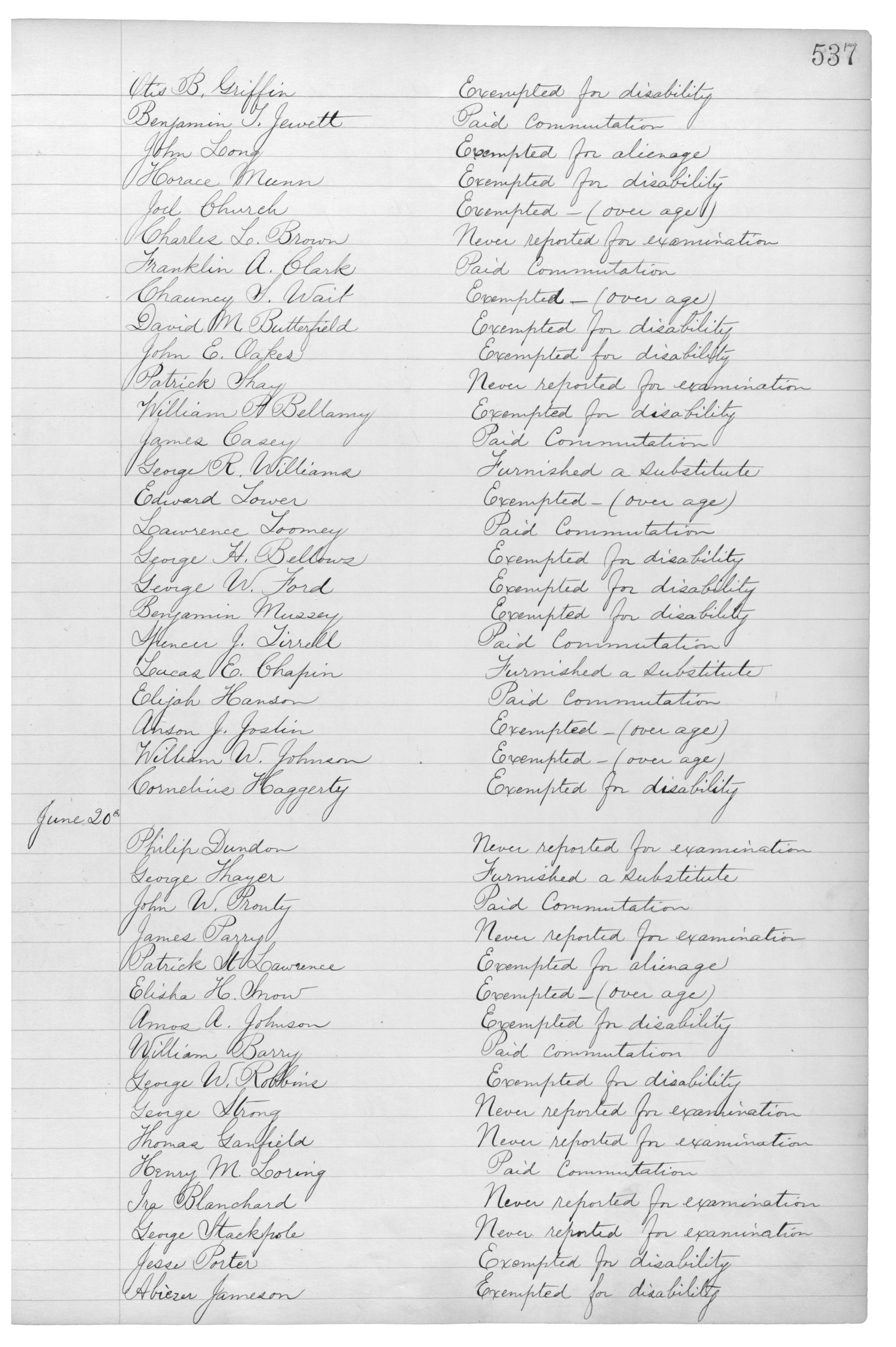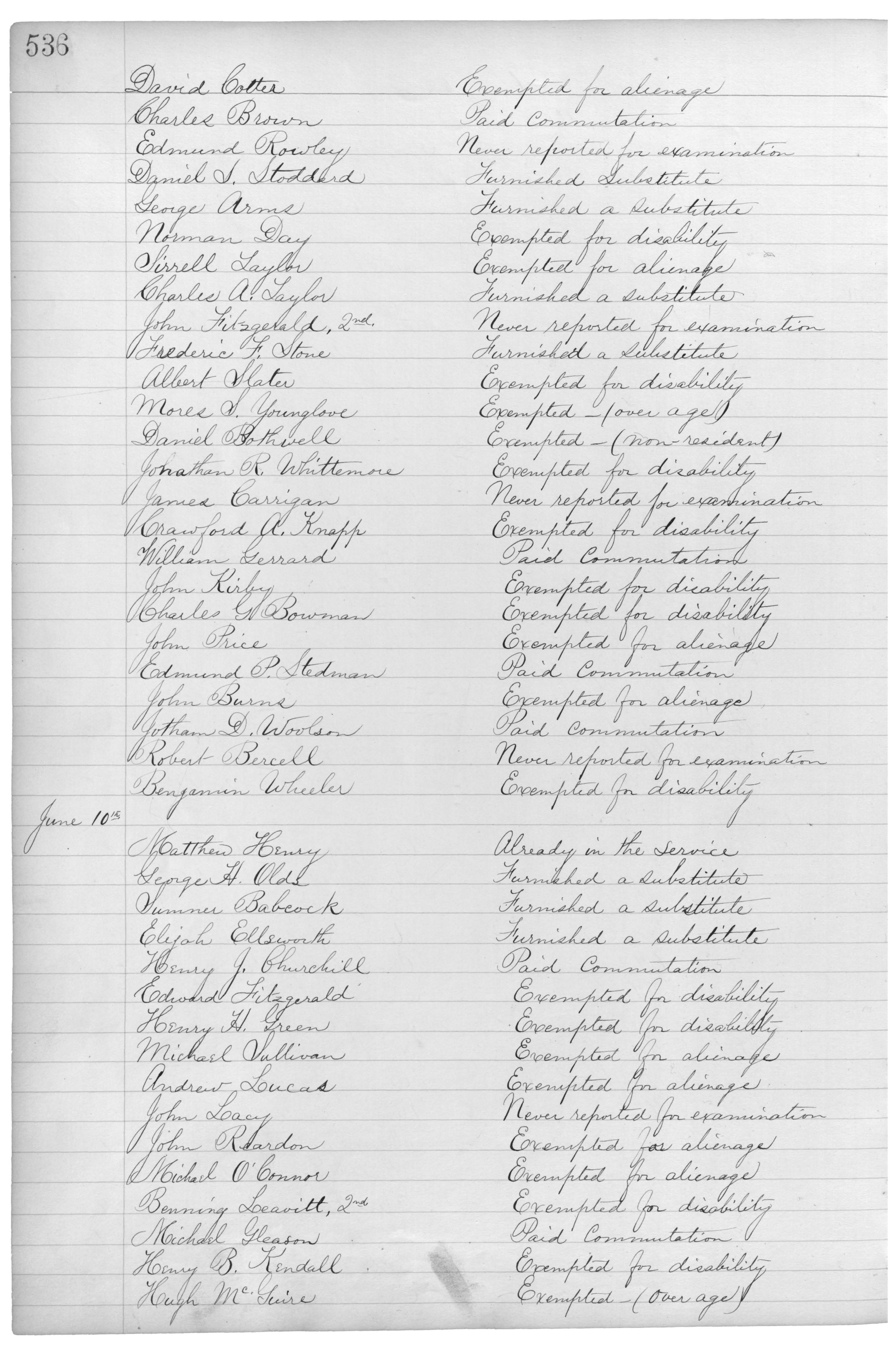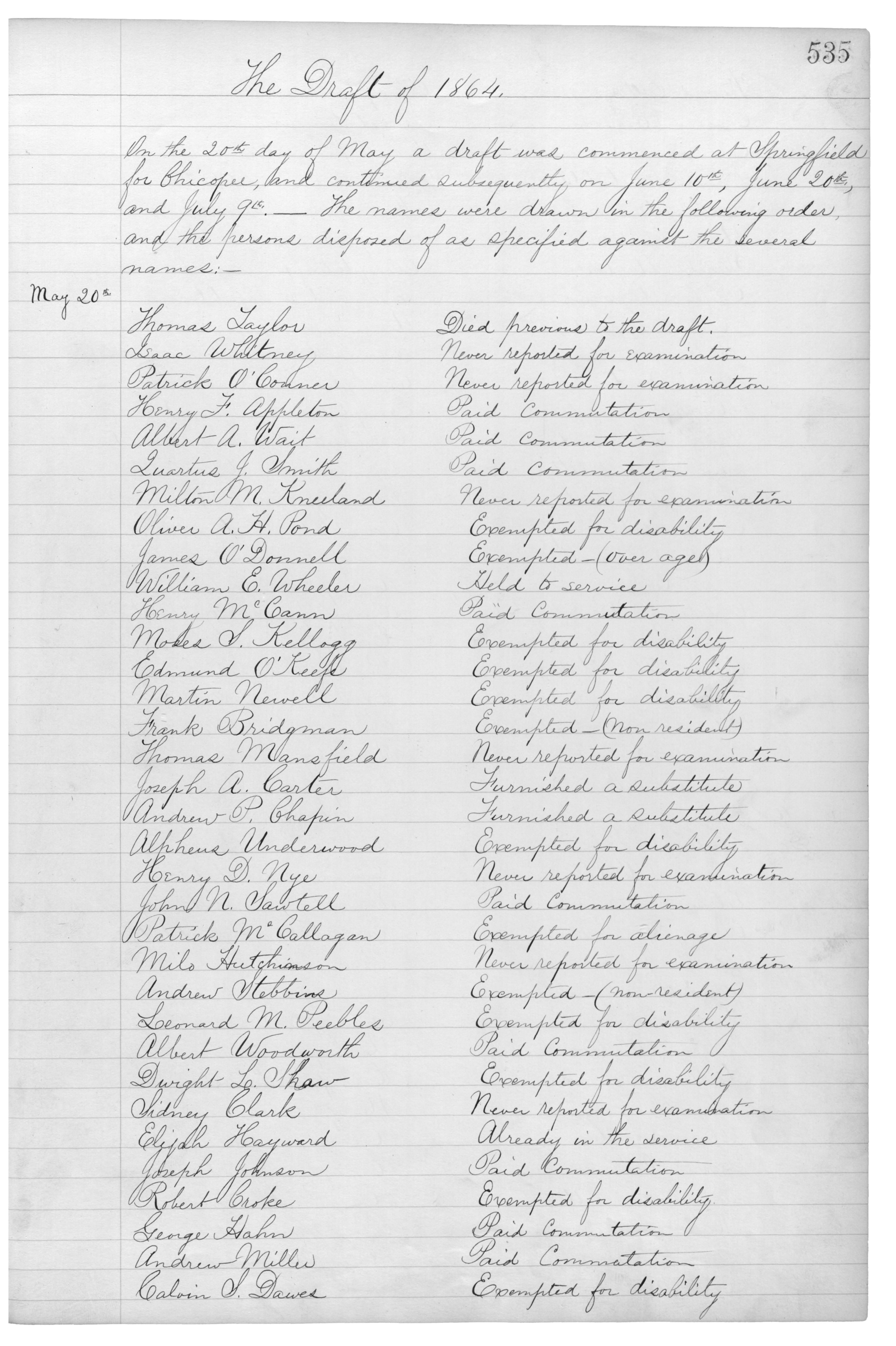On the 20th day of May a draft was commenced at Springfield for Chicopee, and continued subsequently on June 10th, June 20th, and July 9th._The names were drawn in the following order, and the persons disposed of as specified against the several names:_
