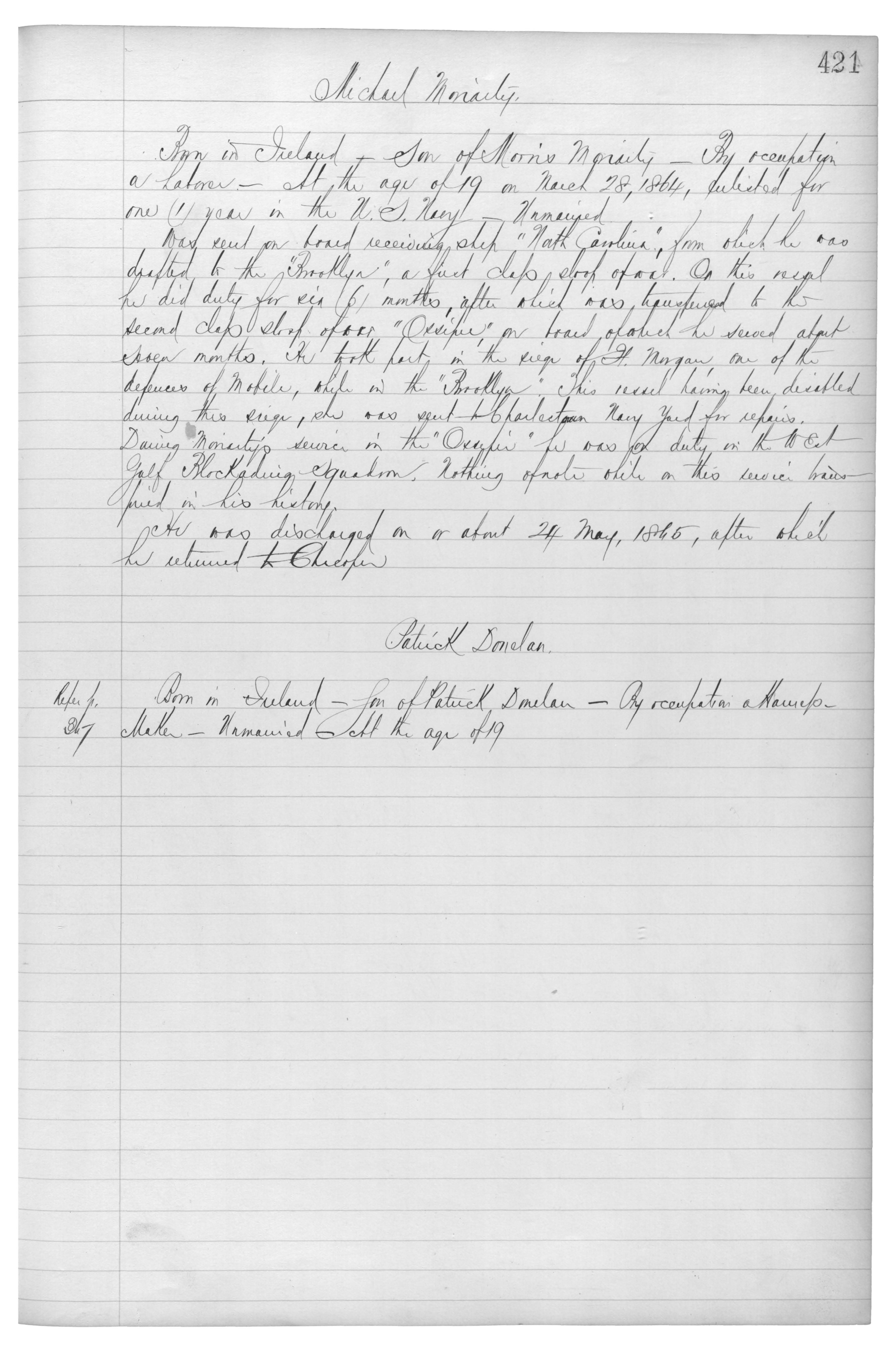 Born in Ireland_Son of Patrick Donelan_by occupation a Harness-Maker_Unmarried_At the age of 19.