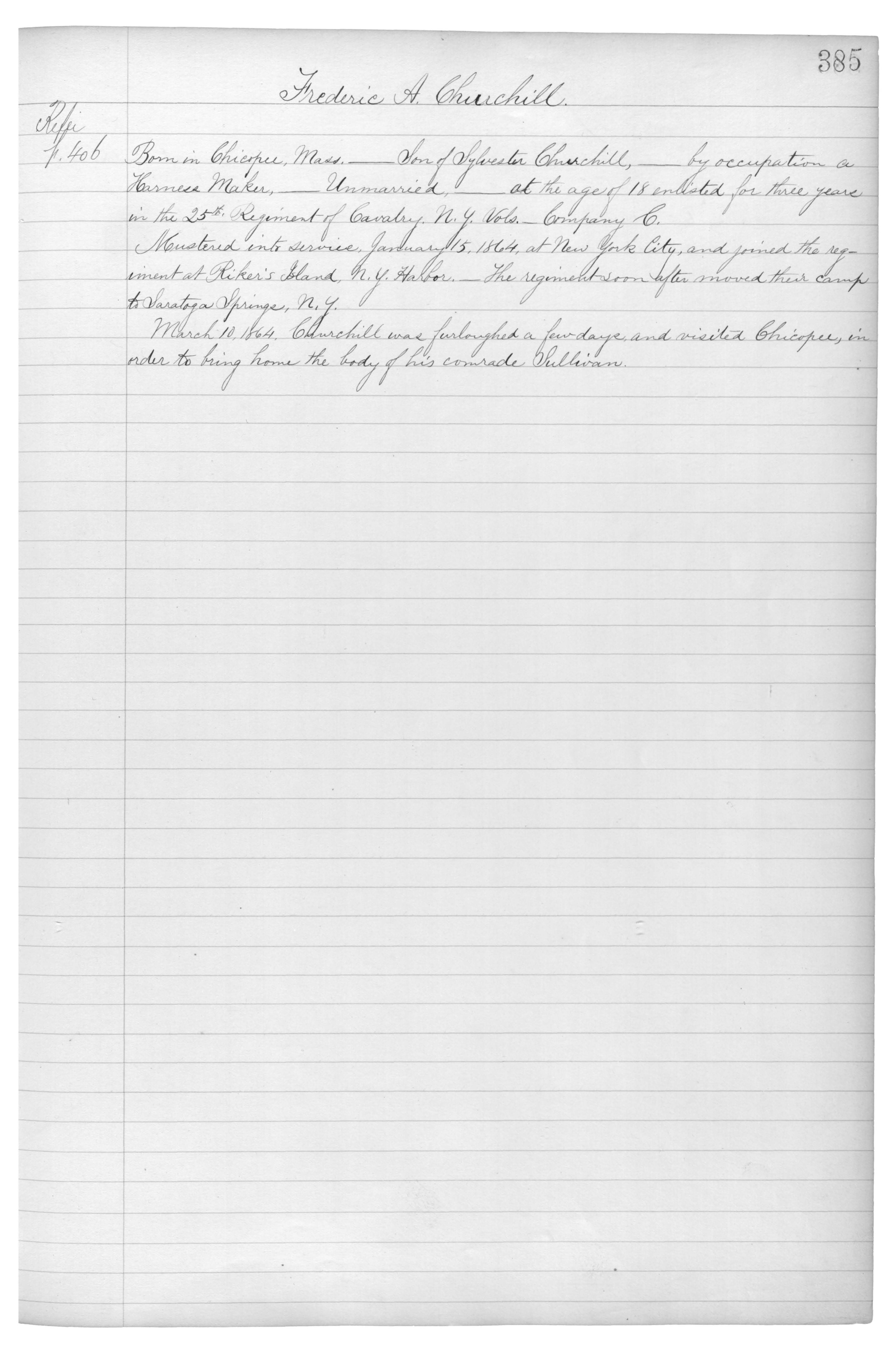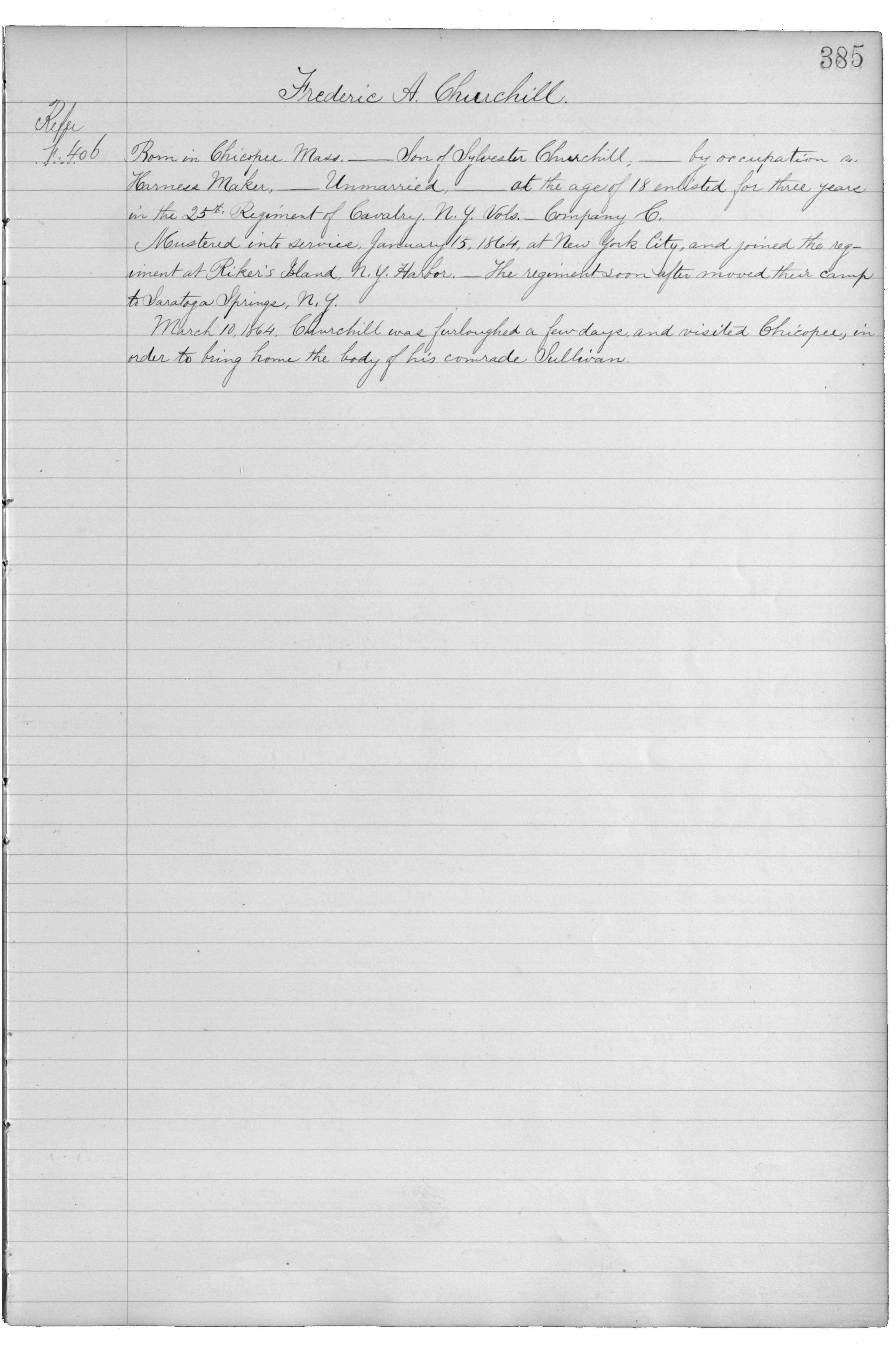 Born in Chicopee, Mass._Son of Sylvester Churchill,_by occupation a Harness Maker,_Unmarried,_at the age of 18 enlisted for three years in the 25th Regiment of Cavalry, N.Y. Vols._Company C.