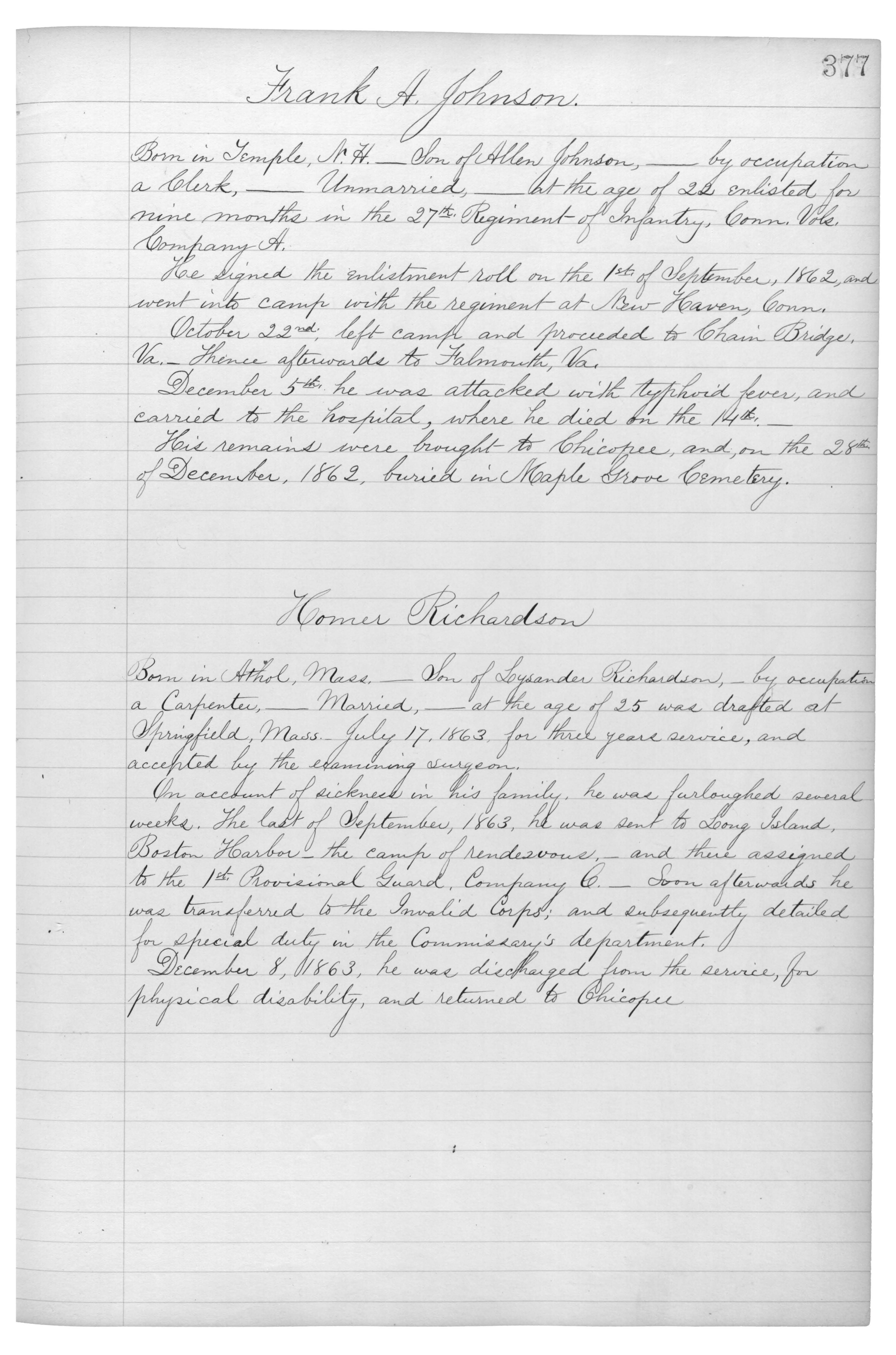 “Frank A. Johnson, Civil War Soldier,” Chicopee Archives Online, accessed March 5, 2026, https://www.chicopeepubliclibrary.org/archives/items/show/2501.