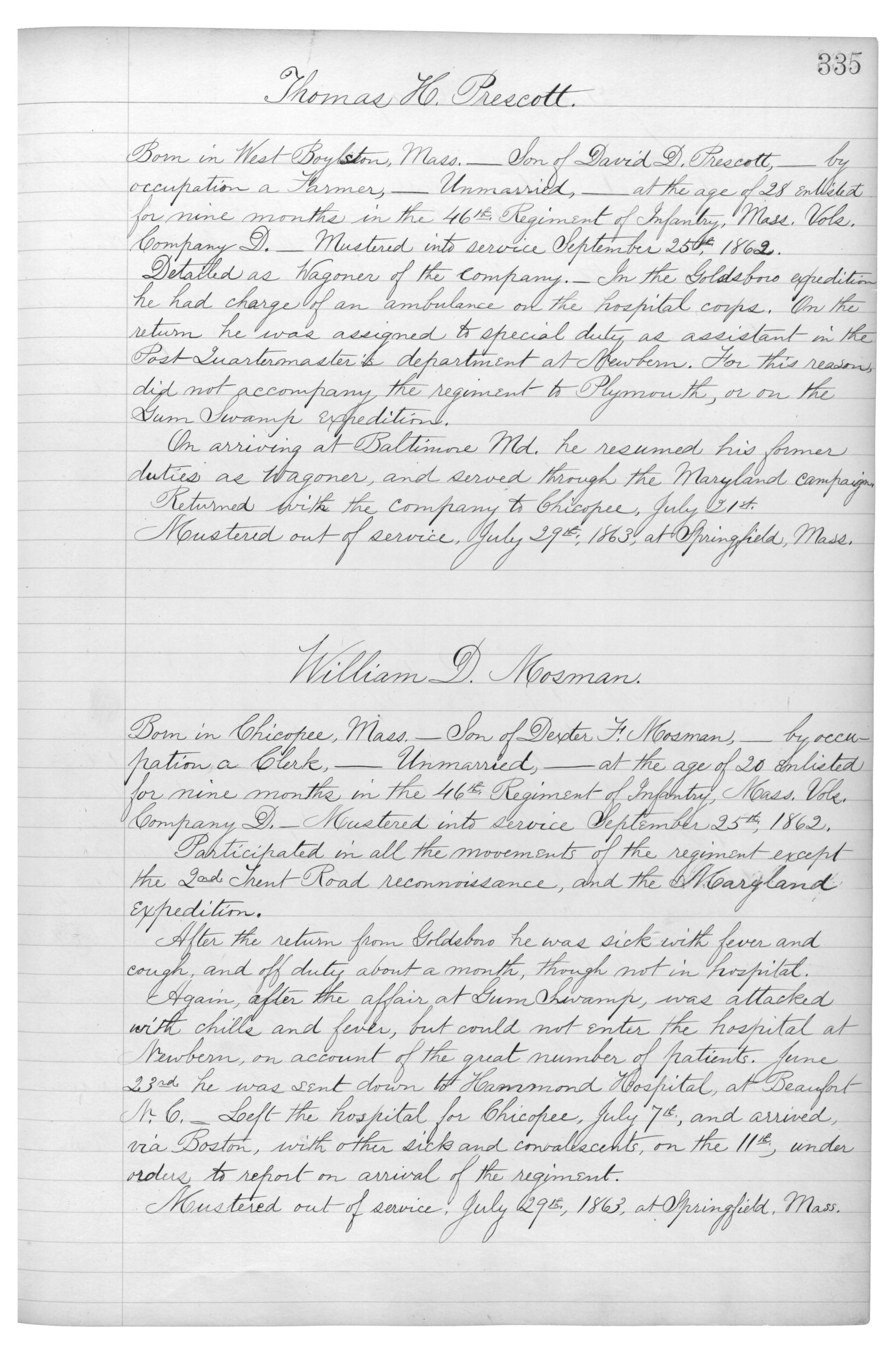 “William D. Mosman, Civil War Soldier,” Chicopee Archives Online, accessed March 5, 2026, https://www.chicopeepubliclibrary.org/archives/items/show/2565.
