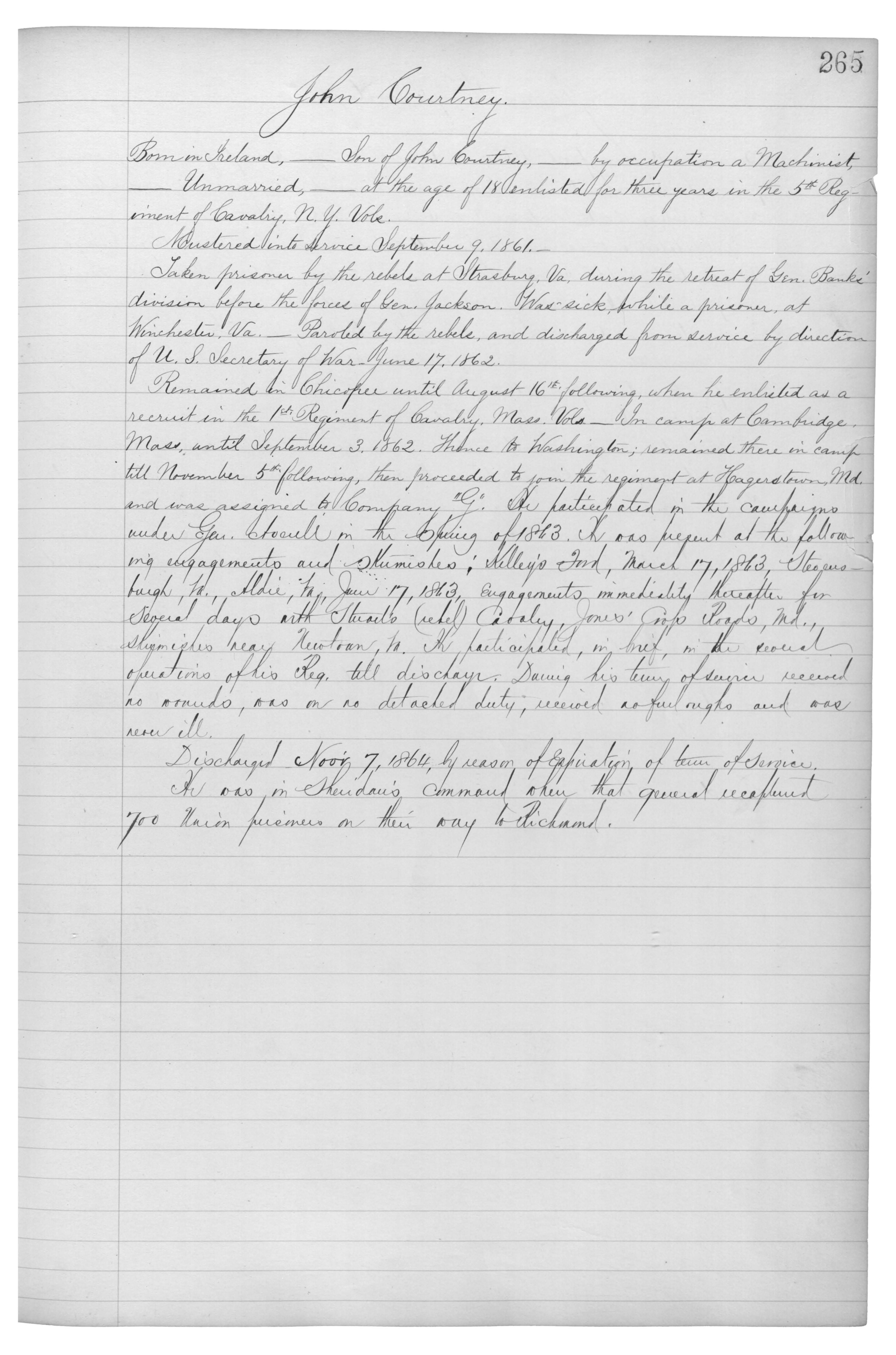 Born in Ireland,_Son of John Courtney,_by occupation a Machinist,_Unmarried,_at the age of 18 enlisted for three years in the 5th Regiment of Cavalry, N.Y. Vols.