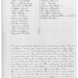 December 1st, were in reserve, and December 2nd, fell back to the north bank of the Rapidan, crossing at Culpepper Ford. On the3RD; returned to camp near Brandy Station. Remained in camp at Brandy Station till 29 Feb., at which time marched, and in two days, {???} near Madison Ct. House. 2d March returned to former camp at Brandy Station, a distance of 24 miles. From this date to 4 May remained here encamped. On 4 May, left camp, the Command numbering an effective force29 officers and 581 men present for duty. 5th May, took part in 1st day’s fight in the Wilderness. Though not heavily engaged, the Reg. was exposed for a part of the time to a heavy musketry fire, having one officer and Eleven men wounded. Night of 5th slept on battlefield. In the action of the 6th Reg. lay in the thried or fourth line of battle as a support to Reg. in front. When the advance was hurled back in confusion, the 37th stayed, for a time, the progress of the enemy. It {chased} with great gallantry and, on the battle firld, was complimented for its conduct by Gen. Wadsworth. Later on was ordered to retire, which it did in good order. Casualties, 2 officers wounded, 29 men killed, 99 wounded and 8 missing. During night of 6th, formed its Cops (the 6th) on the extreme right of the line. 7th and 8th on march towards Spottsylvania Ct. House, in front of which amassed on 8th. Here Col. Edwards was assigned to the command of the Brigade. From this date to 12th, recouped various positions in the line of battle, with loss of 15. On the 12th engaged with its division (the 2nd) in an assault on the enemy’s {work}. The fight was almost a hand to hand {evenules} and was most desperate, continuing from sunrise to midnight when the rebels abandoned the field. In the battle, the Reg. captured a battle flag from the enemy. Losses 8 officers and 39 men. 13th, was relieved from duty on the front line. 14th, took position with its corps on extreme left of the line and during night threw up rifle-pits. 17th, marched all night and took position in second line in readvance to attack at daylight. 18th, returned to Earth works, the enemy’s work {forming} to {???} to be caused by assault. Then moved to left, crossed the River and bivouacked, there remaining till 21st. from 13th to 21st in the several engagements near Spottsylvania, Reg. lost 81 killed, 24 wounded and missing. 21st, position in front of Spottsylvania Evacuated._ In a three days march crossed North Anna River, arriving near {Pamenkey} on the 28th. 29th marched to {Stancon} Ct. House. 30th, to Peak Station. 1st {???}, to Coal Harbor. While the army lay here, the Reg. Accupied various positions in line of battle, with losses of 2 officers wounded, 31 men killed, wounded and missing. 1th, Lt. Col. {Montegue}, who was wounded in engagement of 12 May, resumed command. 12th to 17th, in march to Petersburgh. 17th to 29th, in front of Petersburgh. 29th, in the expedition to {Reams} Station. After destroying several miles of rail-road returned to its old positions, 2 July. The return of the {???} 10th Mass., found the 31st unexpectively on the 16th an d23 {June}. In the various battles in front of Petersburgh, the Reg. lost 5 men killed and 7 wounded. On the 9th July, with 6th Corps, proceeded to Washington, in which arrived on the 12th. Participated in engagement at Ft. {Stevens}, with slight loss. 14th Reg. was armed with Spencer Repeating Rifle. On the 21st Aug., while acting as a support to the picket line, near Summit {???}, Va., the REg. was engaged in a brisk skirmish nearly all day with some loss. 16 Sept., the {relatives} and {recruits} of the 7th and 10th Reg. were by order consolidated with the Command adding 73 men to the affective strength of the Command. On the 19th the Reg. was engaged in the battle of {Oleguar}, fought under Gen. {Sheriden} it numbered at that date, effective {force}, 296 men. The Reg. did {gallently} in the fight, capturing the colors of Stonewall Jackson’s old Reg. It lost killed and wounded 6 officers and 84 men. Evening of 19th, detailed for duty as provost guard of {Winchester}, Va., and continued on this duty till 13 {Dce} at which date was ordered to report to Gen.{ Halleck} {???}. There is was ordered to Petersburgh, in front of which it arrived on the 16th. There to close ofyear {???} on duty there.
