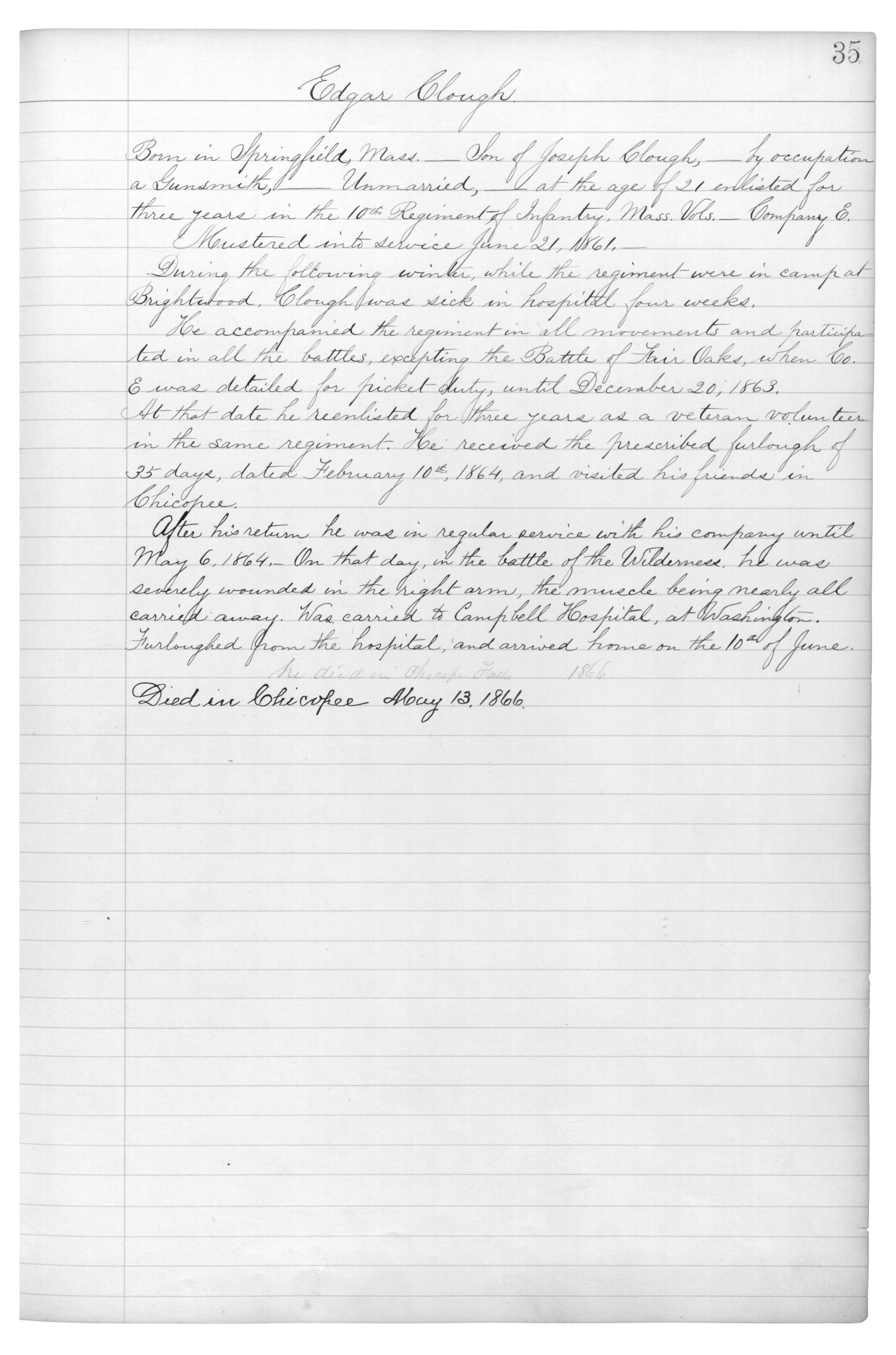 “Edgar Clough, Civil War Soldier,” Chicopee Archives Online, accessed March 5, 2026, https://www.chicopeepubliclibrary.org/archives/items/show/2824.
