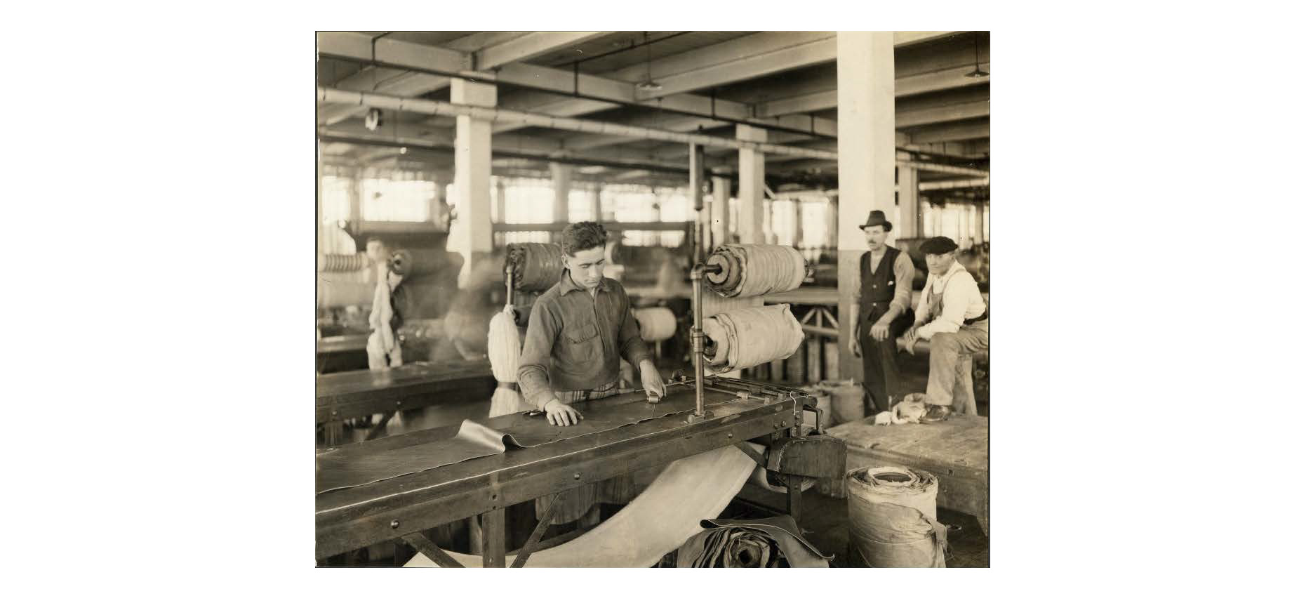 “Cutting tire cord on a table,” Chicopee Archives Online, accessed March 6, 2026, https://www.chicopeepubliclibrary.org/archives/items/show/4073.