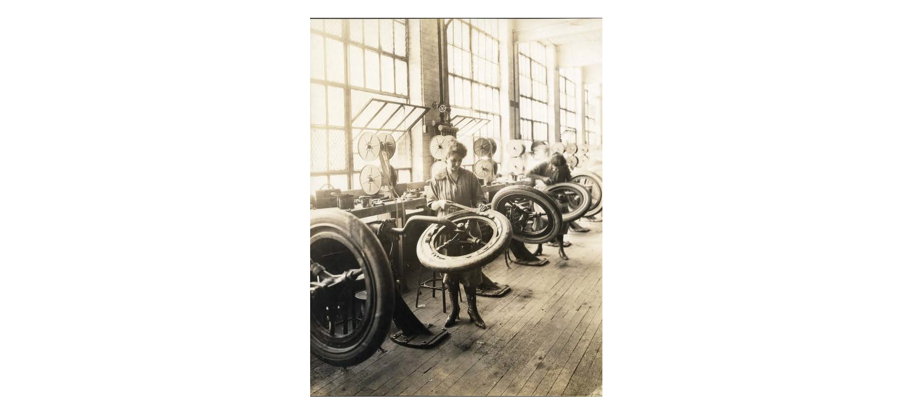 “Working on a tire at a finishing stand,” Chicopee Archives Online, accessed March 6, 2026, https://www.chicopeepubliclibrary.org/archives/items/show/4076.