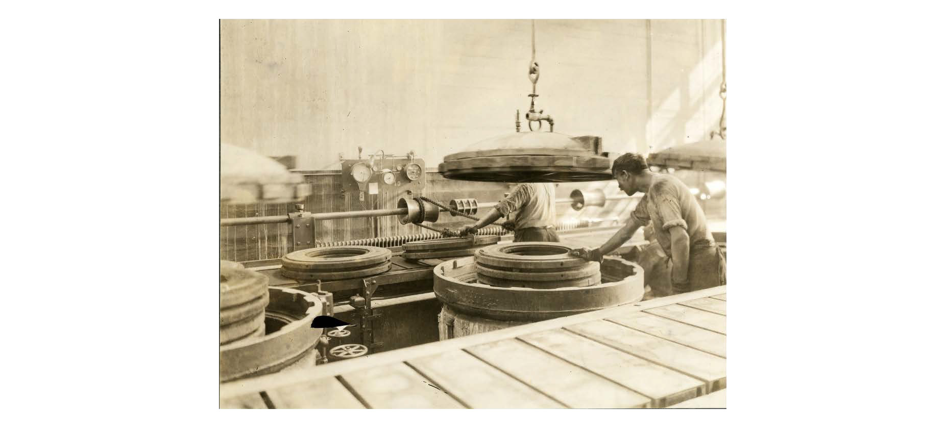 “Filling the vulcanizer with the molds,” Chicopee Archives Online, accessed March 6, 2026, https://www.chicopeepubliclibrary.org/archives/items/show/4084.