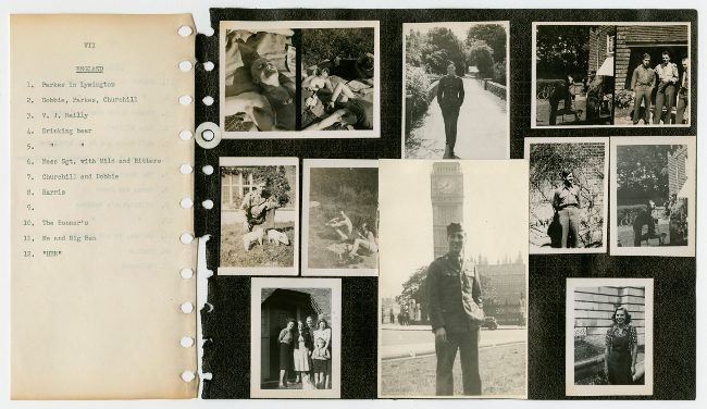 Roy Belliveau joined the United States Army on February 7, 1941 and was assigned to the 57th Signal Battalion, 121st Radio Intelligence Company. He spent the next five years training and getting ready to join the war in Europe. In 1942 he trained in Iceland, then was sent to England in 1943 where he spent over a year training. In October, 1944 he arrived in France and from there took part in campaigns in Belgium, Holland and Germany before coming home to Chicopee, Massachusetts. The scrapbook and photographs in this collection were taken by Belliveau during his time in the army while serving abroad and in Europe during World War II.