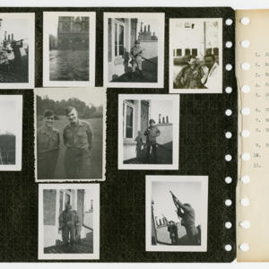 Roy Belliveau joined the United States Army on February 7, 1941 and was assigned to the 57th Signal Battalion, 121st Radio Intelligence Company. He spent the next five years training and getting ready to join the war in Europe. In 1942 he trained in Iceland, then was sent to England in 1943 where he spent over a year training. In October, 1944 he arrived in France and from there took part in campaigns in Belgium, Holland and Germany before coming home to Chicopee, Massachusetts. The scrapbook and photographs in this collection were taken by Belliveau during his time in the army while serving abroad and in Europe during World War II.