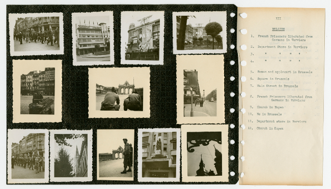 Roy Belliveau joined the United States Army on February 7, 1941 and was assigned to the 57th Signal Battalion, 121st Radio Intelligence Company. He spent the next five years training and getting ready to join the war in Europe. In 1942 he trained in Iceland, then was sent to England in 1943 where he spent over a year training. In October, 1944 he arrived in France and from there took part in campaigns in Belgium, Holland and Germany before coming home to Chicopee, Massachusetts. The scrapbook and photographs in this collection were taken by Belliveau during his time in the army while serving abroad and in Europe during World War II.