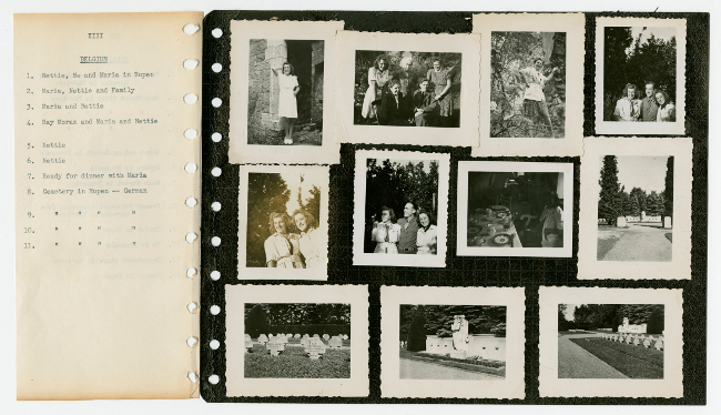 Roy Belliveau joined the United States Army on February 7, 1941 and was assigned to the 57th Signal Battalion, 121st Radio Intelligence Company. He spent the next five years training and getting ready to join the war in Europe. In 1942 he trained in Iceland, then was sent to England in 1943 where he spent over a year training. In October, 1944 he arrived in France and from there took part in campaigns in Belgium, Holland and Germany before coming home to Chicopee, Massachusetts. The scrapbook and photographs in this collection were taken by Belliveau during his time in the army while serving abroad and in Europe during World War II.