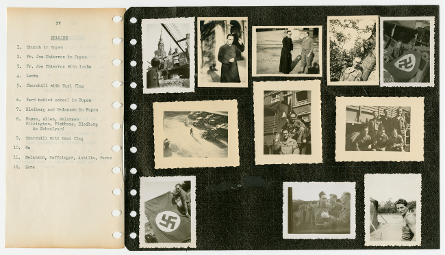 Roy Belliveau joined the United States Army on February 7, 1941 and was assigned to the 57th Signal Battalion, 121st Radio Intelligence Company. He spent the next five years training and getting ready to join the war in Europe. In 1942 he trained in Iceland, then was sent to England in 1943 where he spent over a year training. In October, 1944 he arrived in France and from there took part in campaigns in Belgium, Holland and Germany before coming home to Chicopee, Massachusetts. The scrapbook and photographs in this collection were taken by Belliveau during his time in the army while serving abroad and in Europe during World War II.