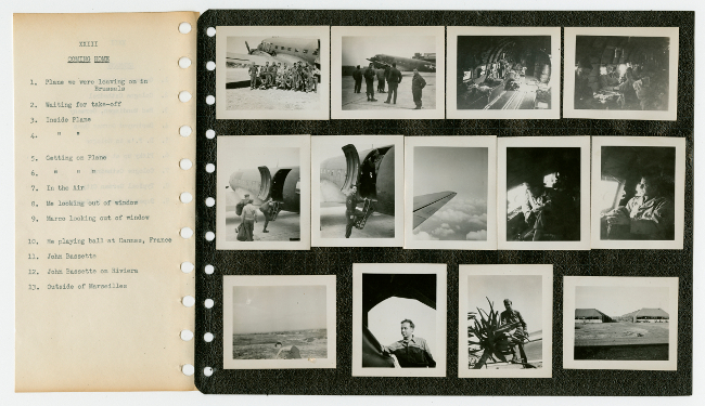 Roy Belliveau joined the United States Army on February 7, 1941 and was assigned to the 57th Signal Battalion, 121st Radio Intelligence Company. He spent the next five years training and getting ready to join the war in Europe. In 1942 he trained in Iceland, then was sent to England in 1943 where he spent over a year training. In October, 1944 he arrived in France and from there took part in campaigns in Belgium, Holland and Germany before coming home to Chicopee, Massachusetts. The scrapbook and photographs in this collection were taken by Belliveau during his time in the army while serving abroad and in Europe during World War II.