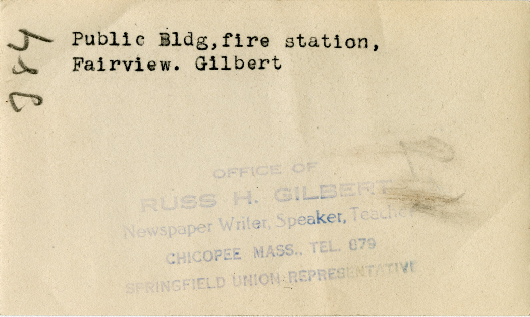 Gilbert, Russ H., “Fairview Fire Station,” Chicopee Archives Online, accessed March 6, 2026, https://www.chicopeepubliclibrary.org/archives/items/show/4563.