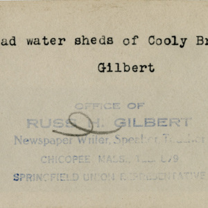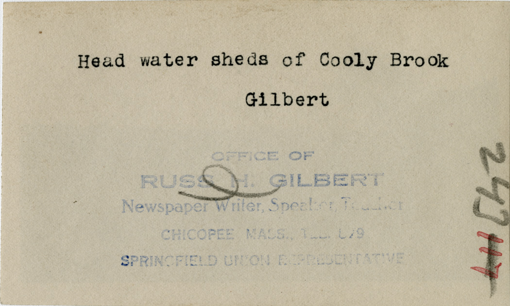 Gilbert, Russ H., “Head watersheds of Cooly Brook,” Chicopee Archives Online, accessed March 6, 2026, https://www.chicopeepubliclibrary.org/archives/items/show/4573.