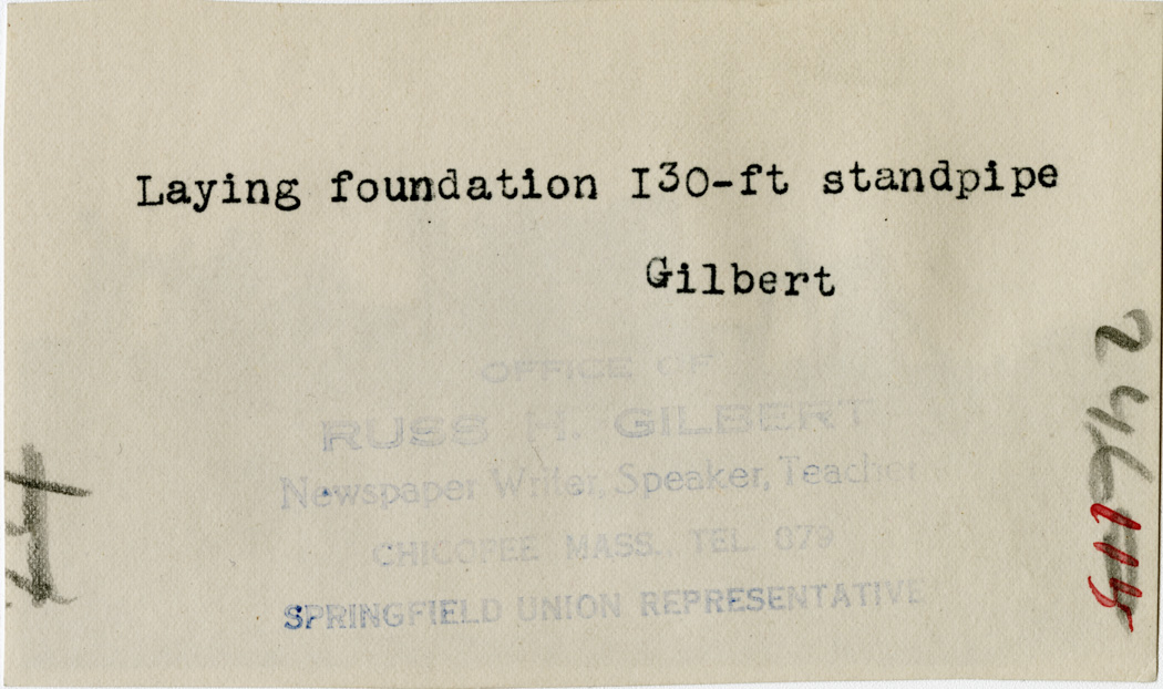 Gilbert, Russ H., “Laying a 130-foot standpipe,” Chicopee Archives Online, accessed March 6, 2026, https://www.chicopeepubliclibrary.org/archives/items/show/4575.