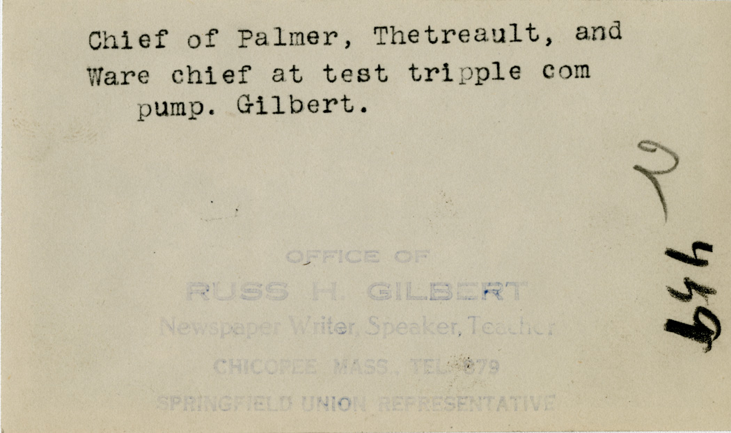 Gilbert, Russ H., “Fire Chiefs at Pumper Test,” Chicopee Archives Online, accessed March 6, 2026, https://www.chicopeepubliclibrary.org/archives/items/show/4581.