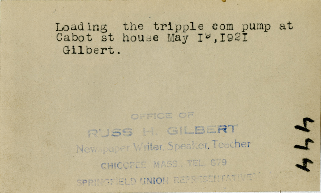 Gilbert, Russ H., “Triple-Com Pumper at Cabot Street Station,” Chicopee Archives Online, accessed March 6, 2026, https://www.chicopeepubliclibrary.org/archives/items/show/4582.