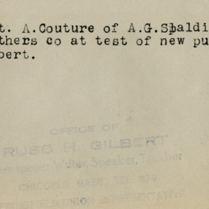 Gilbert, Russ H., “A. Couture of A. G. Spalding Company,” Chicopee Archives Online, accessed March 6, 2026, https://www.chicopeepubliclibrary.org/archives/items/show/4585.